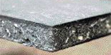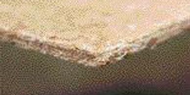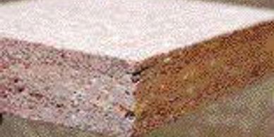 This is a low-density Featherfiber ® composite board sample made for the building, boating and recreational-vehicle industries. The core is chopped feather quill. The skin is a thin layer of spun Fiberglass, and the bonding agent is a closed-cell form of urethane.